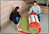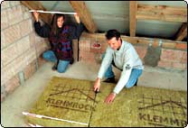Die Klemmrock ist ein komprimierter Steinwollefilz von der Rolle, der in Dicken bis 18 Zentimeter erhältlich ist. Mit einer Breite von 1 Meter ist die Rolle einfach zu transportieren. Sie lässt sich so problemlos bis unter das Dach tragen.