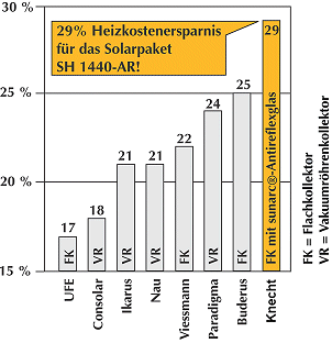 Der Flachkollektor von Knecht mit sunarc®-Antireflexglas erreichte 5% mehr Energieersparnis als der beste Vakuumröhrenkollektor!