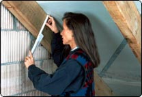 Um die Dicke der Dämmschicht zu ermitteln, muss man zunächst die Sparrentiefe ausmessen. Wenn die Unterdeckbahn nicht diffusionsoffen ist, muss ein 2 Zentimeter tiefer Spalt als Hinterlüftung eingeplant werden (von der gemessenen Sparrentiefe abziehen).